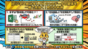 ビジネスシーンでは、マーケティング、人事、経理など、あらゆる分野で「Aが増えればBはどうなるか?」という因果関係や相関関係の検証が不可欠です。