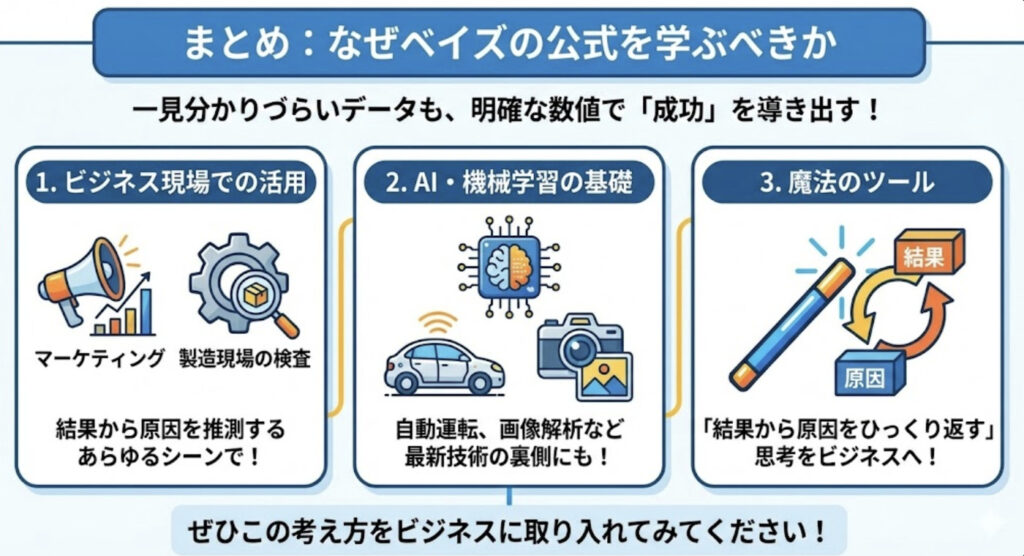 4. まとめ:なぜベイズの公式を学ぶべきか